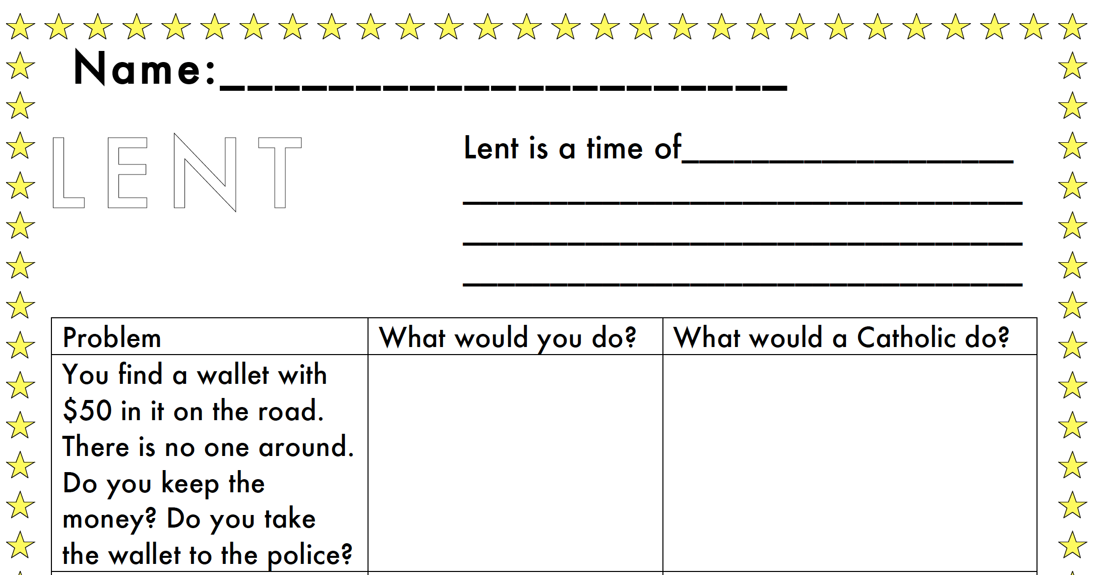 Worksheet: Lent Is A Time..